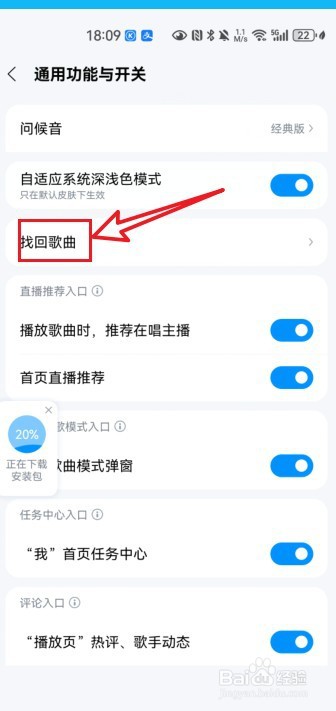 点击选择【找回歌曲】。