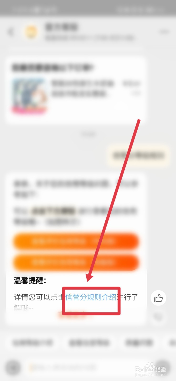 第二步,在官方客服聊天页面,发送并点击信誉分规则进入