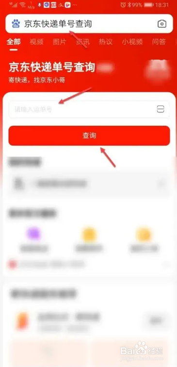 第二步,输入京东快递单号查询后,在查询界面输入单号,点击查询。