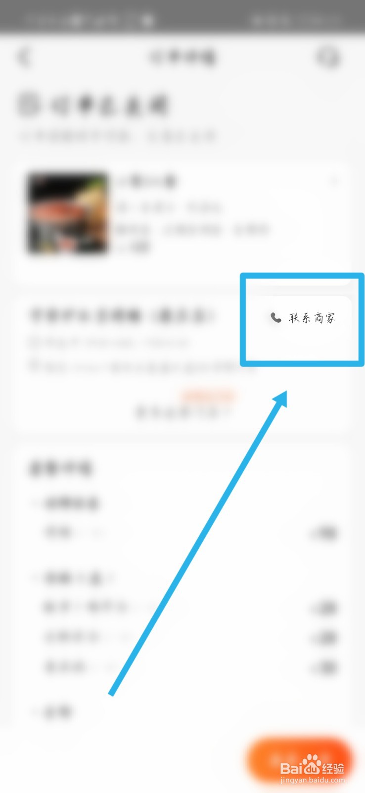 最后,我们在需要退款的订单详情页面点击联系商家说明情况,申请退款,即可退订单