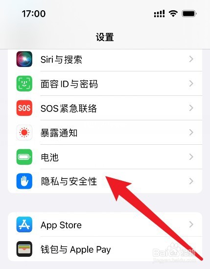 先打开苹果设置进入,点击【隐私与安全性】选项