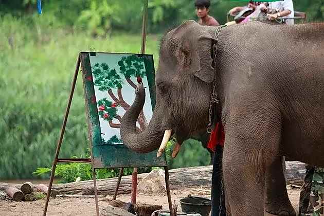 大象画大饼的脚印。大象的脚印就像一个个木桩砸出的圆坑。大象耳大如扇,四肢粗大如圆柱以支持巨大身体,膝关节不能自由屈伸,鼻长几乎与体长相等,呈圆筒状,伸屈自如;象鼻全部是由肌肉组成的,鼻孔开口在末端,鼻尖有指状突起,能拣拾物品,象鼻非常灵活自如,可以捡拾重达1吨的物体,也可以捡拾花生那样小的食物。