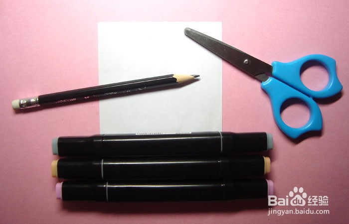 准备好,制作好看的蘑菇儿童剪纸手工的材料和工具,有白纸、正方形卡纸、马克笔、铅笔,剪刀,如下图所示。