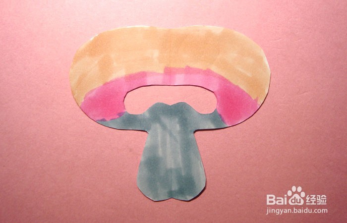 最后,用橙色的马克笔,在剪出的好看的蘑菇的图形上,涂颜色,注意颜色要涂均匀,并用浅灰色的马克笔在好看的蘑菇的底部图形上,涂上颜色,这样一个好看的蘑菇剪纸手工就制作好了,如下图所示。