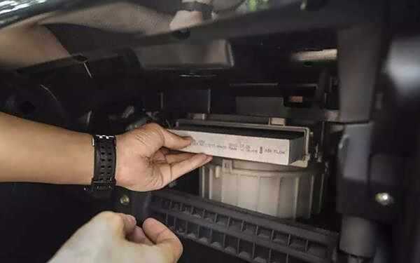日产轩逸的空调滤芯在副驾驶手套箱内,将手套箱打开,先拆卸下手套箱下面的三颗螺丝,打开手套箱,拆掉里面的五颗螺丝,然后取下手套箱会看到滤芯盖,推开卡扣取下滤芯盖,拿出滤芯即可。