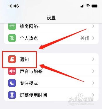 首先打开手机找到并点击进入设置,选择进入“通知”设置界面。