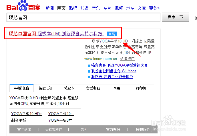 百度搜索“联想官网”