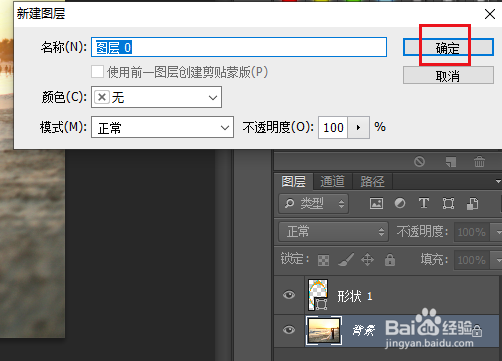 将背景的图像图层更改为普通图层,为此双击背景图层,点击确定即可。移到图像到边框内。