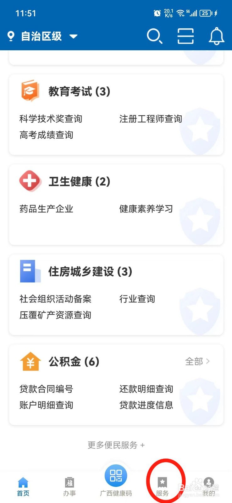 第一步:打开广西政务APP,登录账号,在首页点击【服务】