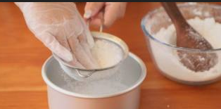 6/20将糕粉隔筛网以碾压摩擦的方式过筛至模具中。