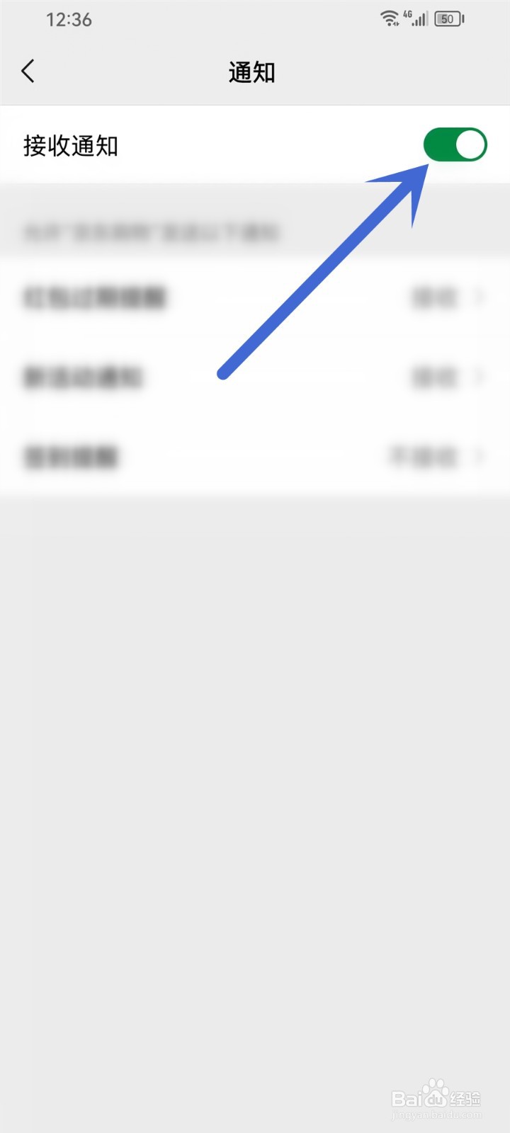 打开“接收通知”开关,即可恢复关闭的服务通知。