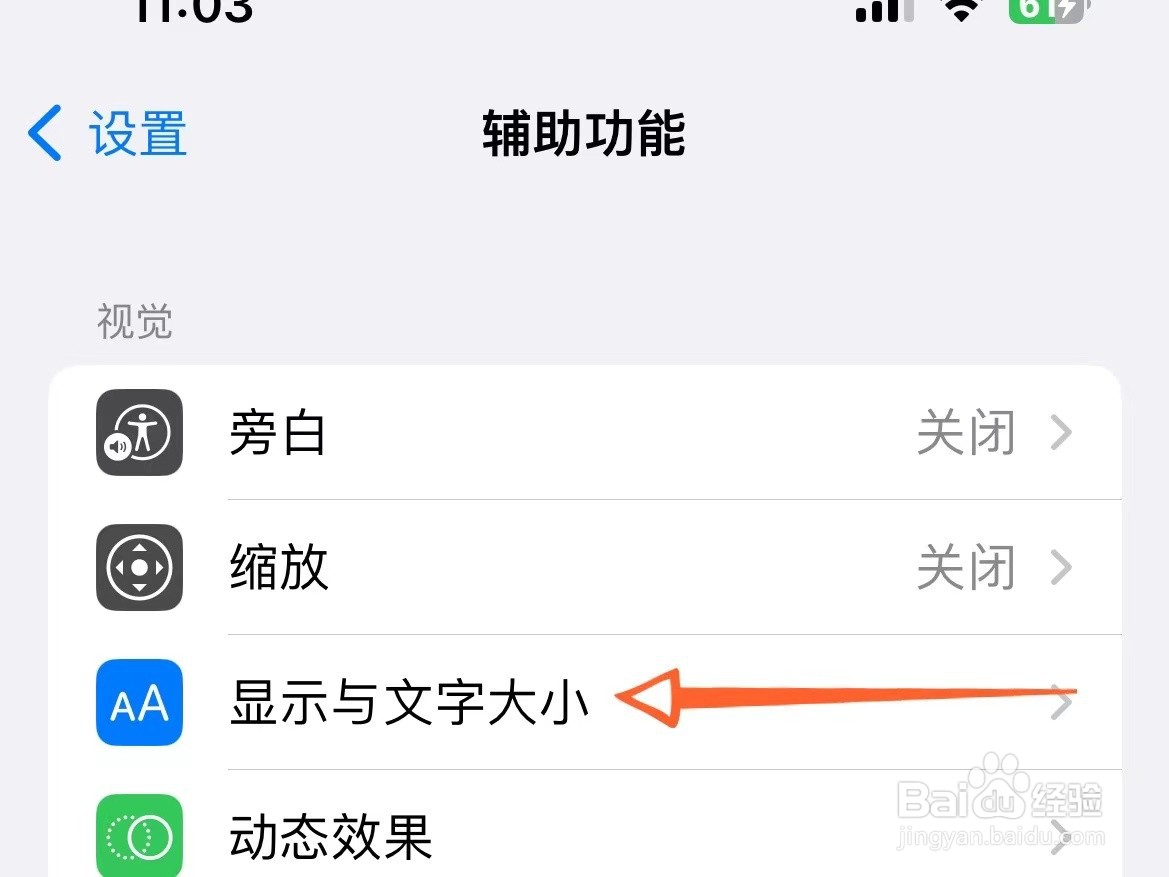 在iPhone手机的设置列表中点击【辅助功能】。