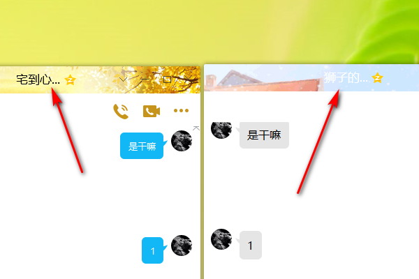 4、一开始的时候,两个QQ的聊天窗口上,只显示对方的QQ昵称。