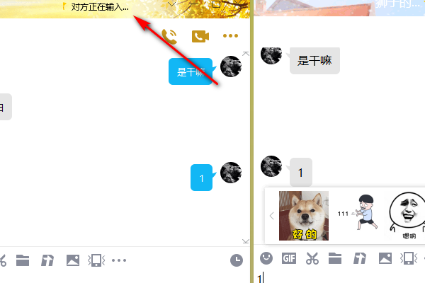 7、一号QQ打字的时候,二号QQ就会出出对方正在输入...。