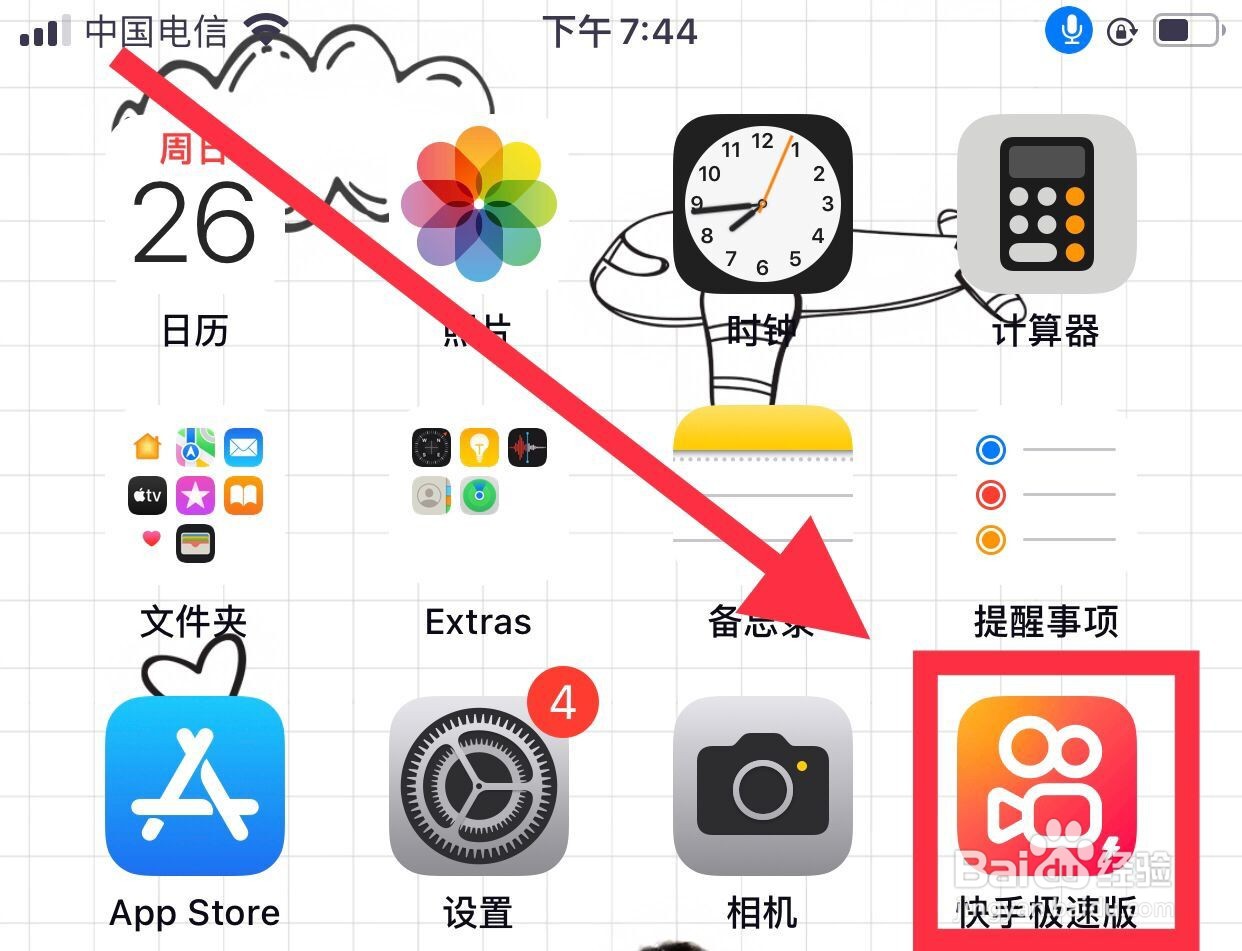 首先,打开苹果手机,在手机桌面上,找到“快手极速版”,并点击进去