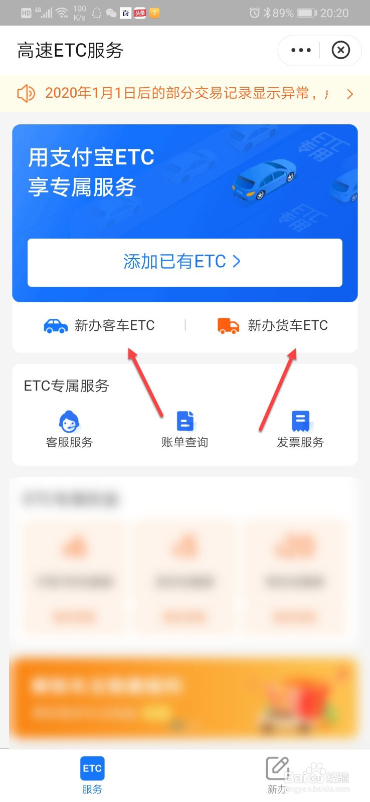 点击新办客车ETC或新办货车ETC,进入办理界面,填写相关信息后办理ETC。