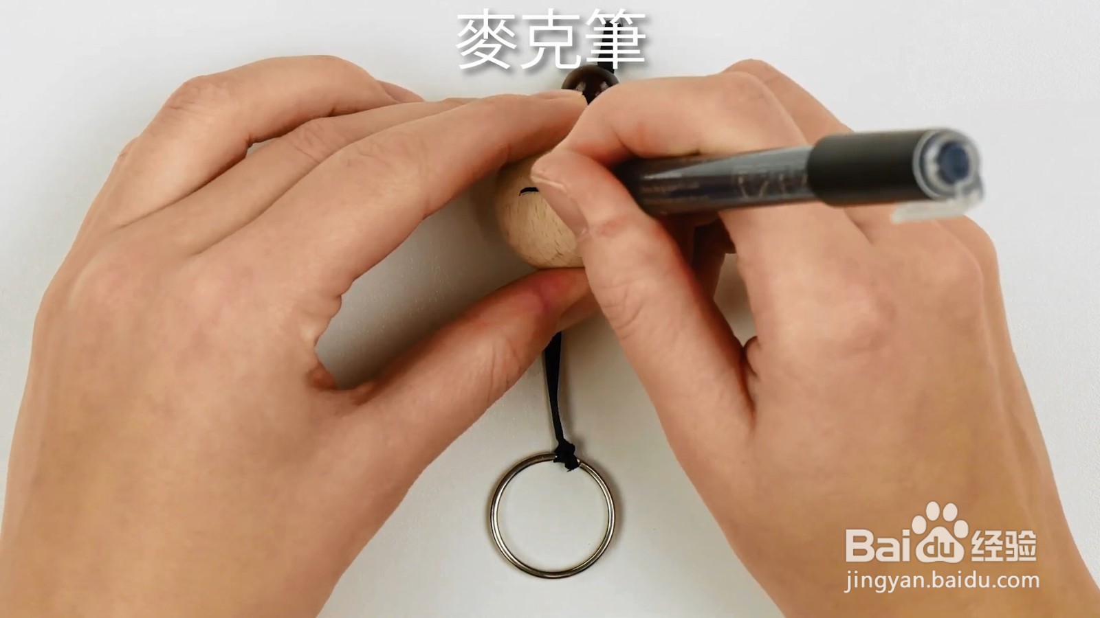 用绳子把木珠穿起来,并在尾部穿上钥匙圈。