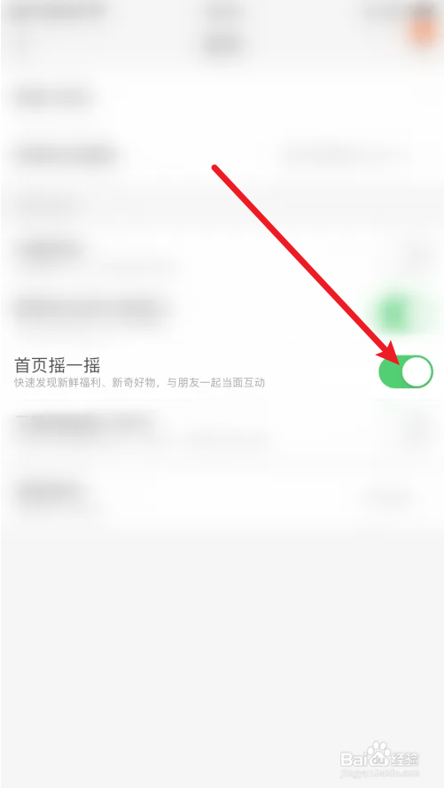 最后我们打开首页,摇一摇选项右侧的开关即可。