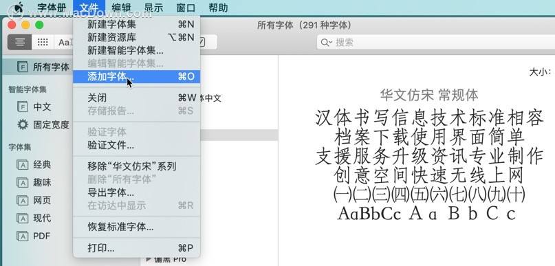 然后点击字体册菜单栏中的【文件】,【添加字体】。