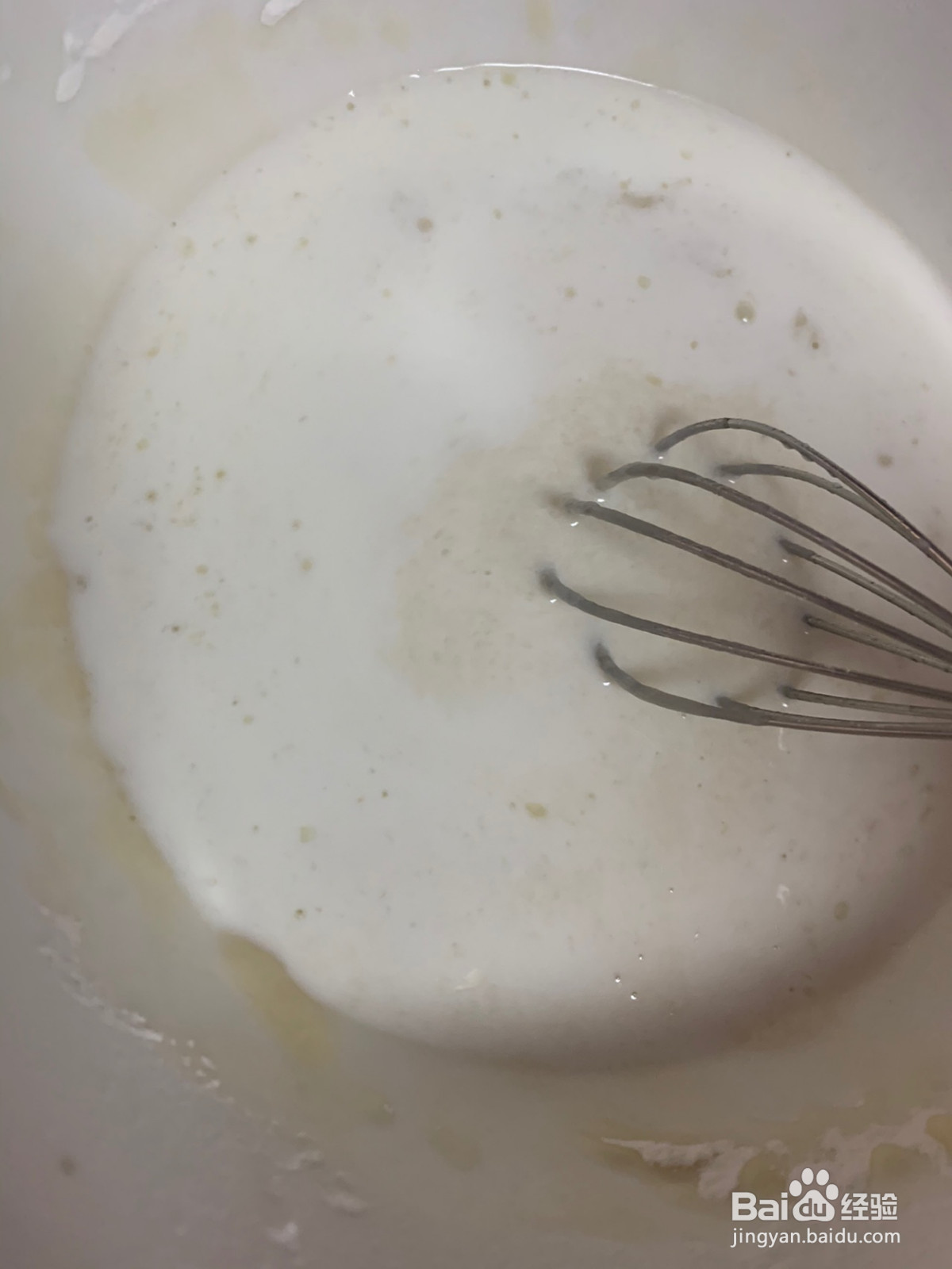 三分之一打好的蛋清倒入蛋黄碗中均匀搅拌