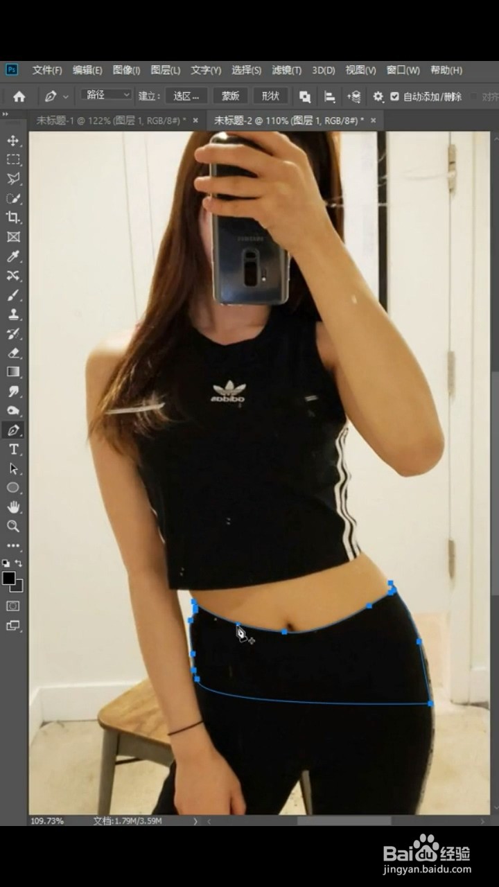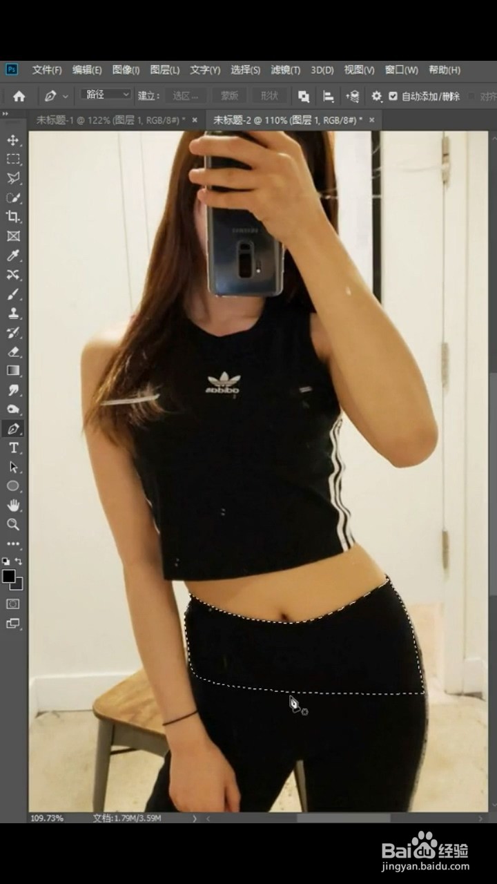 首先使用钢笔工具,框选出需要调整的裤子区域。