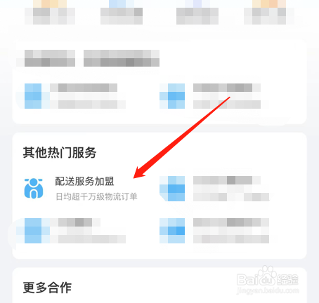 在加盟合作页面,点击配送服务加盟,如图所示;
