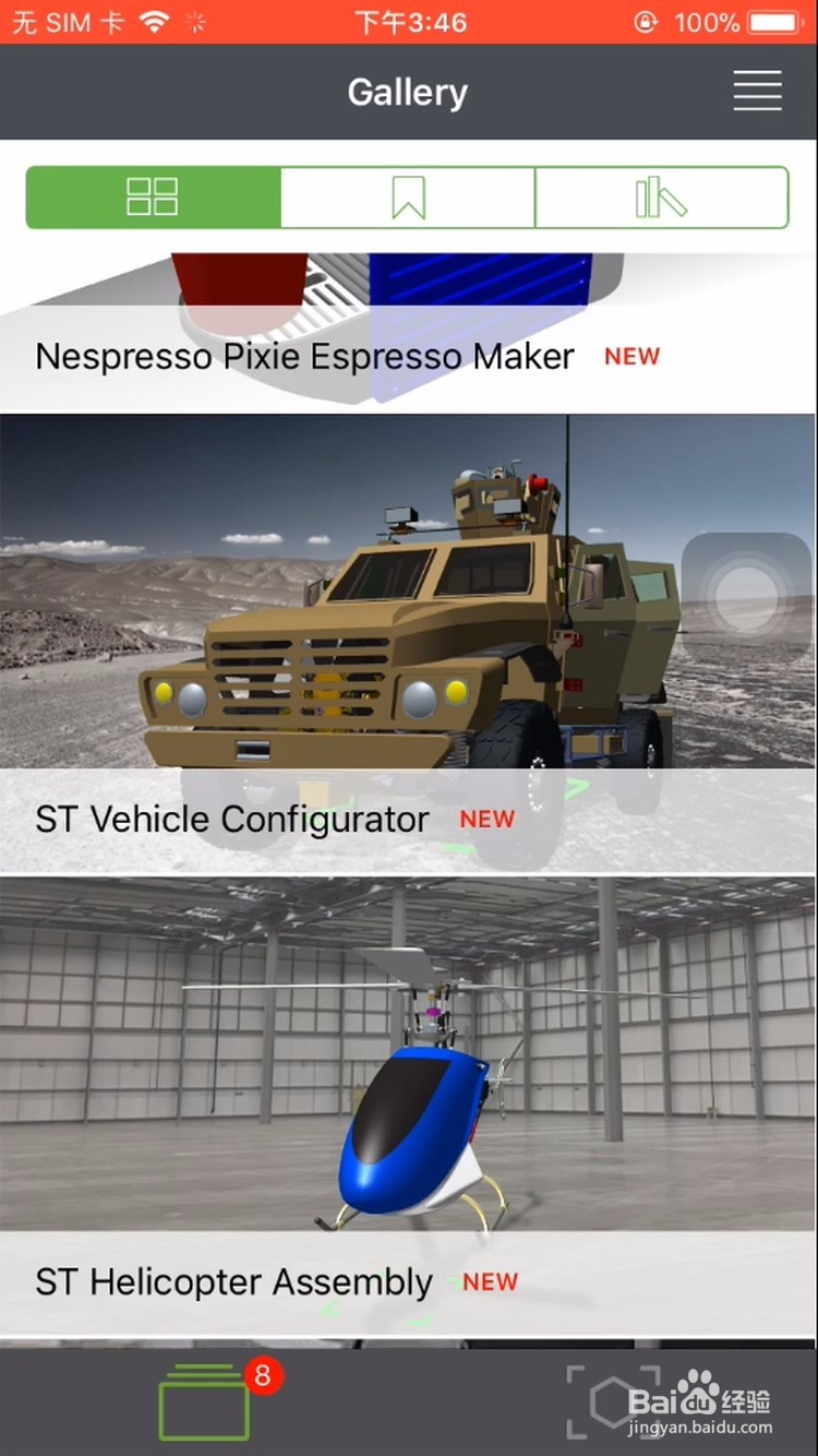 可以看到很多AR模型,有汽车、直升机、咖啡机等等,选择一个打开