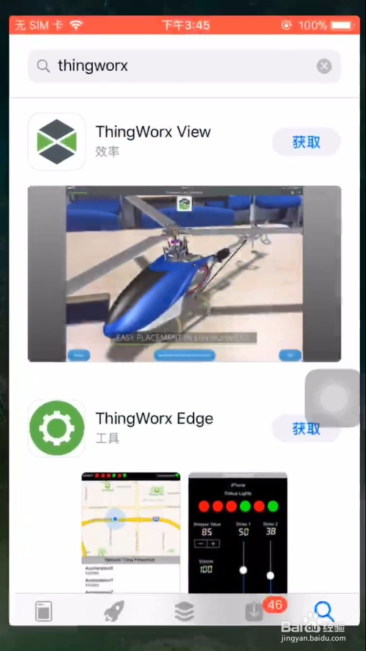 在苹果手机的App Store,安卓手机在Google paly 搜索:ThingWorx View,及进行下载安装