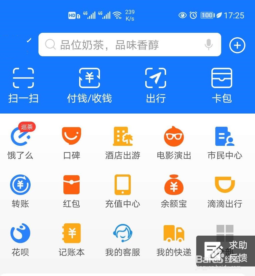 打开【支付宝客户端】,进入到【饿了么】主页面。
