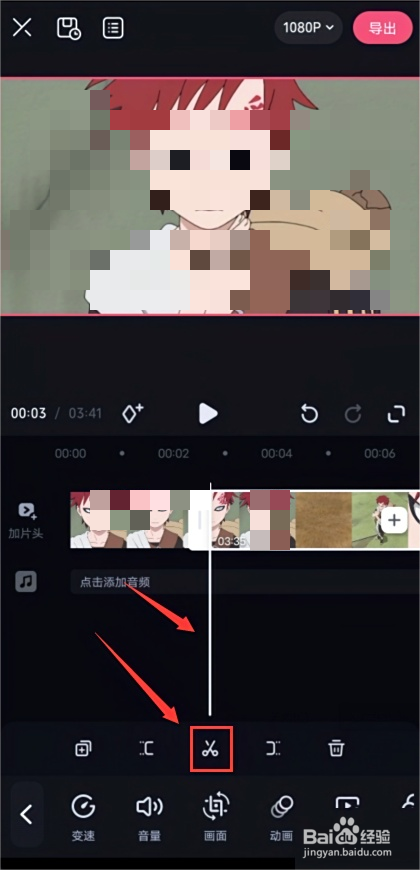 将光标移到想要分割的位置,点击下方的小剪刀即可完成分割。
