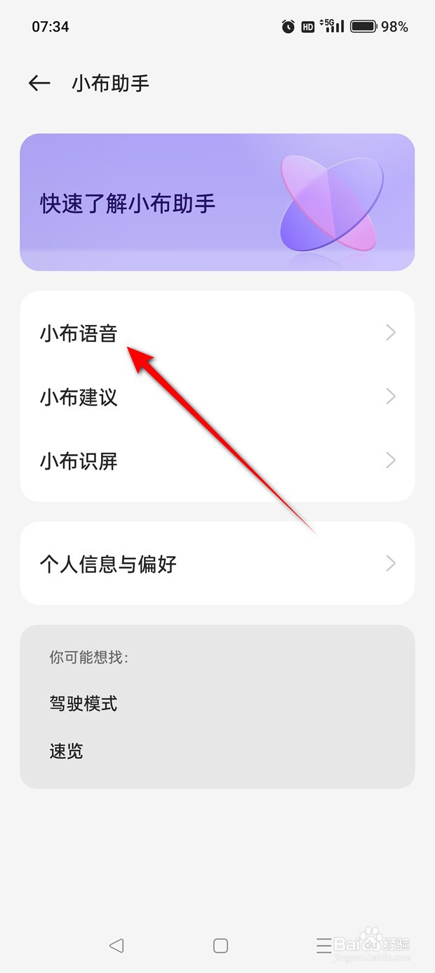 点击“小布语音”。