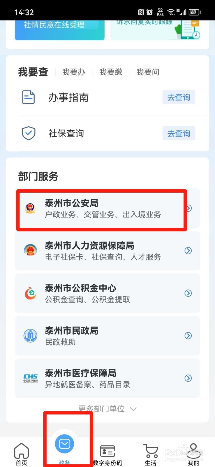 登录泰州通APP,在首页点击____【泰州公安局】