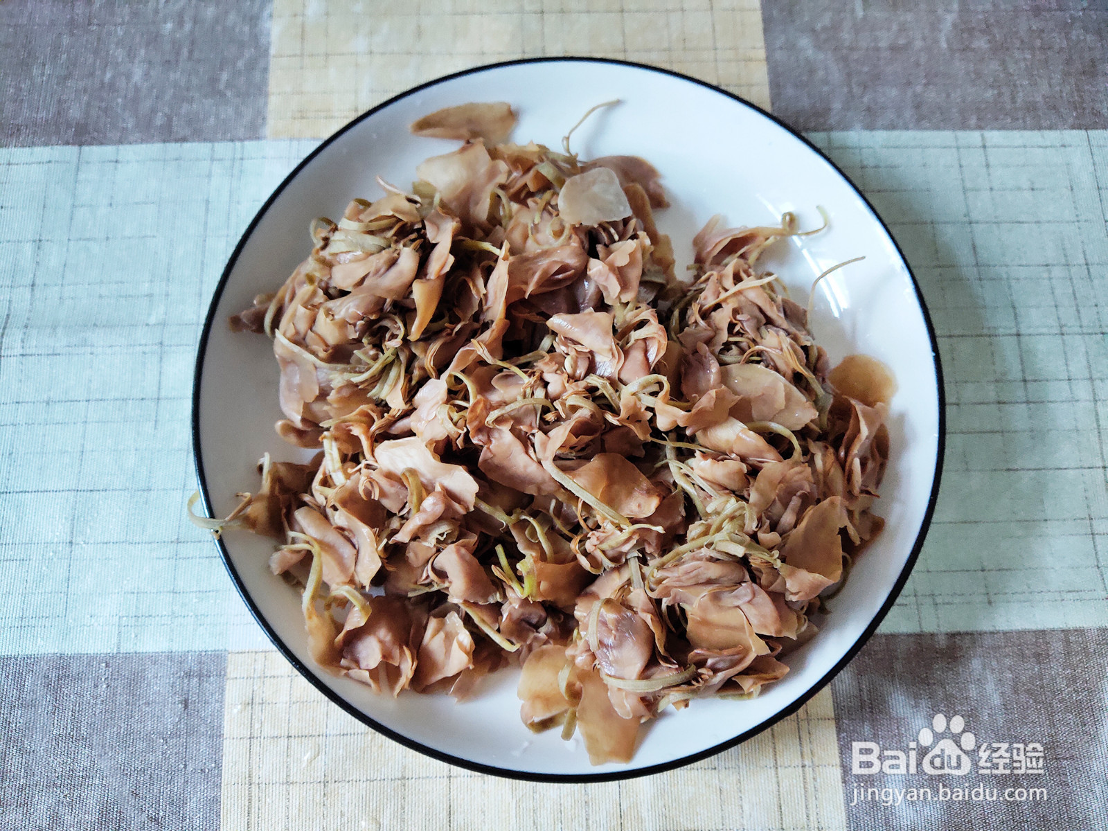 接着将花使劲揉,跟揉面团差不多,把花瓣中的水分揉出,进一步减轻苦涩味。