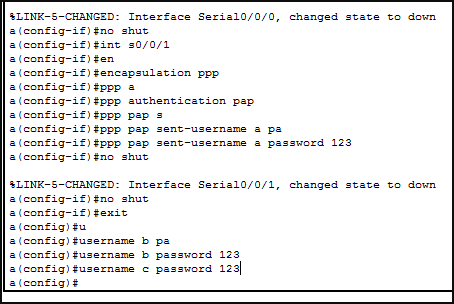 3、 配置路由器a带pap认证的PPP协议,配置命令是: