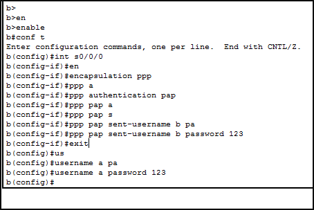 4、配置路由器b带pap认证的PPP协议,配置命令是:
