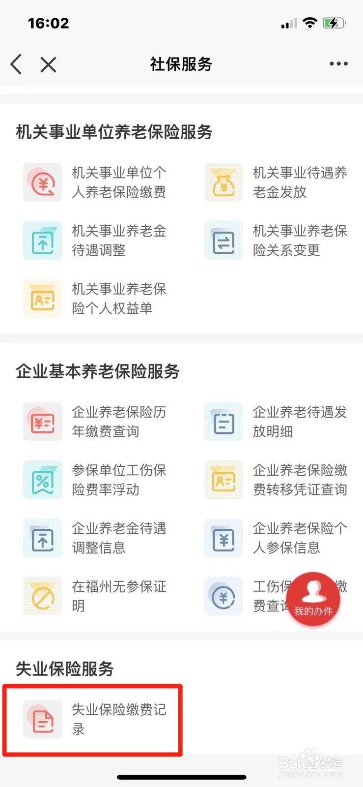 第三步:最后在社保服务页面点击【失业保险缴费记录】即可。