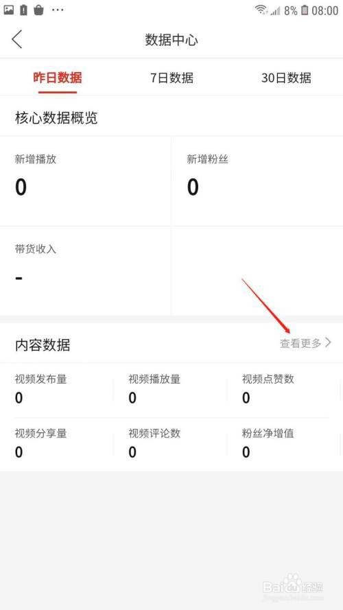 在数据中心页面点击查看更过,即可查看视频作品数据。