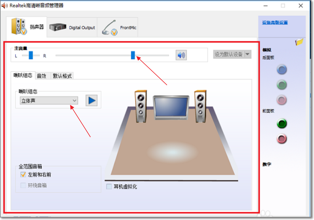 win10系统耳机跟音响同时能用